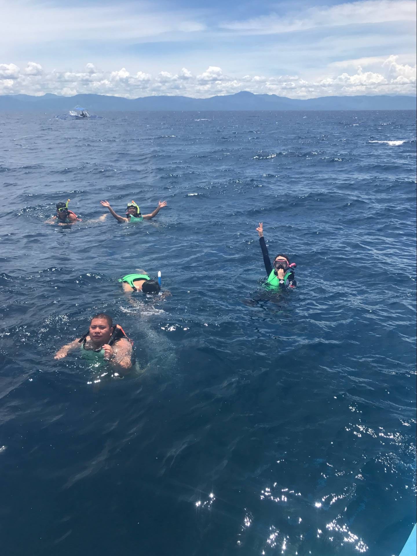 在接下來的這幾天時間里,大家游玩了當(dāng)?shù)靥厣木包c,在圣得瓦利魚類保護區(qū)浮潛,穿梭于五彩的珊瑚礁、海星、海膽之間,與熱帶魚一同悠游于大海中,成群結(jié)隊魚圍繞著你,體驗海底世界的樂趣。上原生態(tài)離島漁村,享用新鮮美味的菲式料理。參觀圣嬰大教堂、麥哲倫十字架、圣佩特羅堡,感受不一樣的名勝古跡和當(dāng)?shù)氐拿袼孜幕?。最激動人心的是,在奧斯洛布隊員們看到鯨鯊,興奮難奈,驚叫聲此起彼伏。