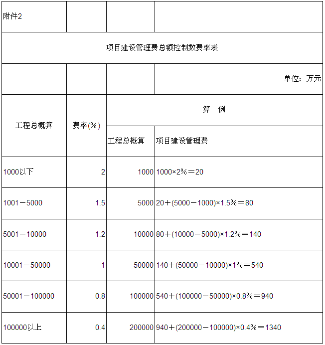2.項目建設管理費總額控制數(shù)費率表